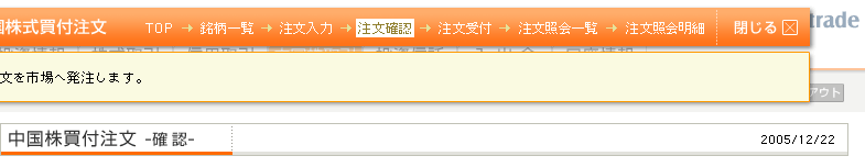 弊社が、各市場の業者に発注後、ご注文を「注文済み」といたします。各市場の取引開始時間以前にいただいたご注文は、各市場の取引開始時に現地業者に発注いたします。