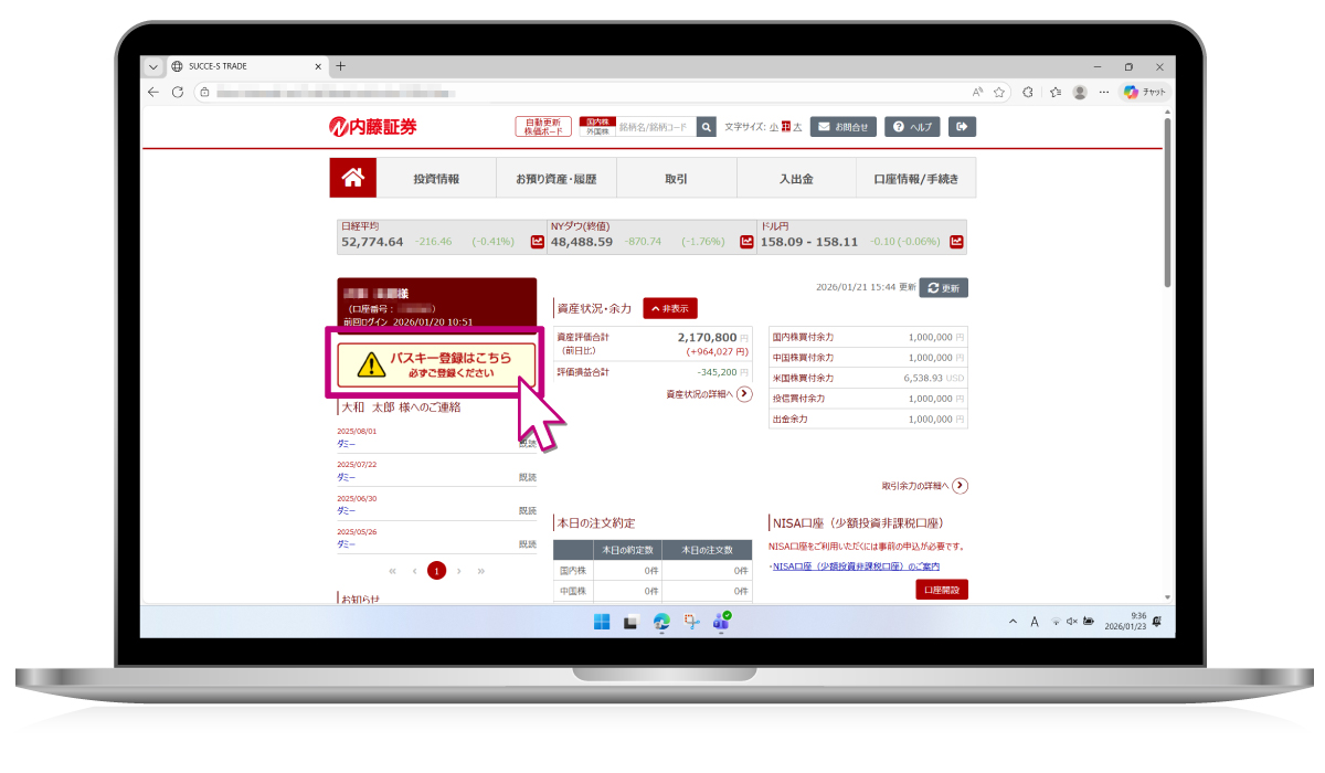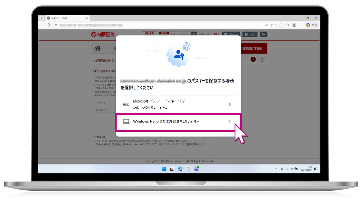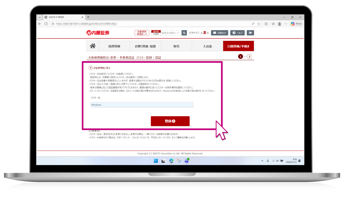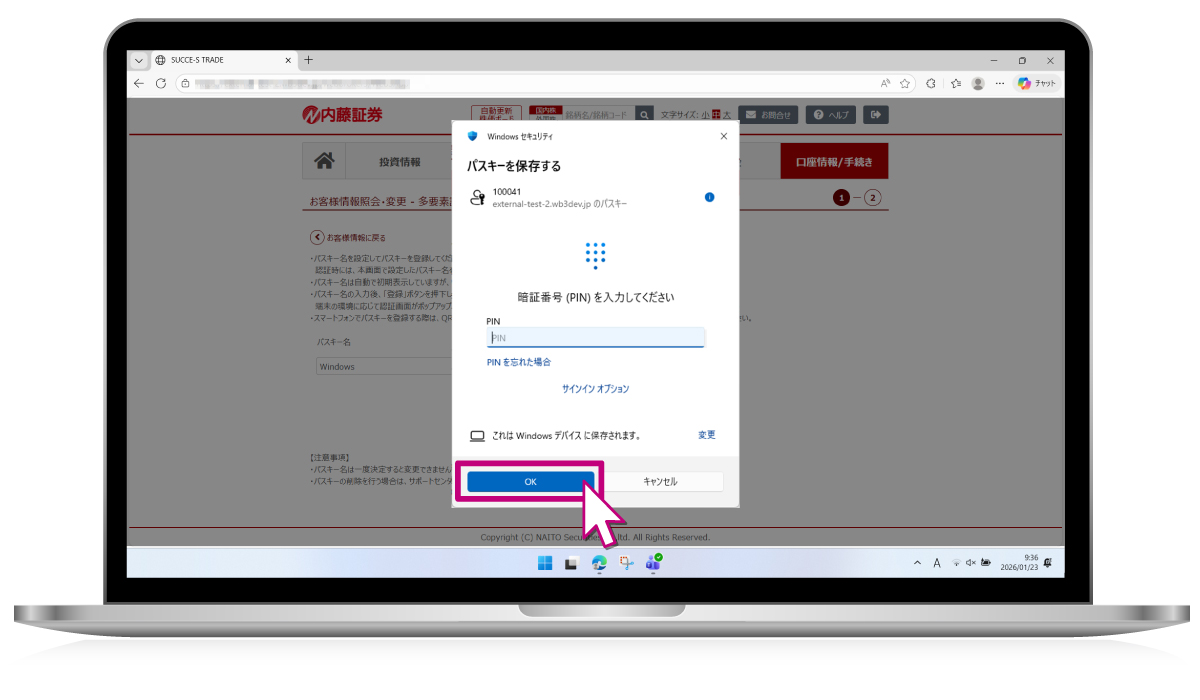 Succe-s tradeでのパスキー利用設定 / パソコン Windows版