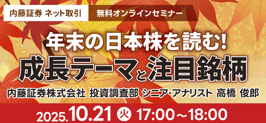 ・本セミナーは内藤証券ネット取引のお客様向けです。お申込み時にご入力いただく口座番号に誤りがある場合、ご視聴をお断りする事がございますのでご了承ください。