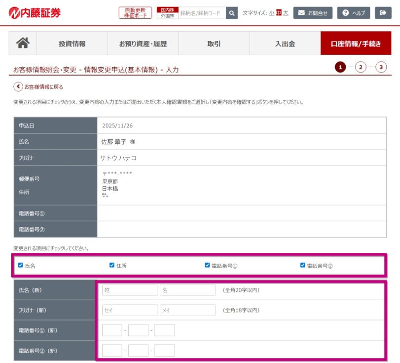 お客様情報の変更