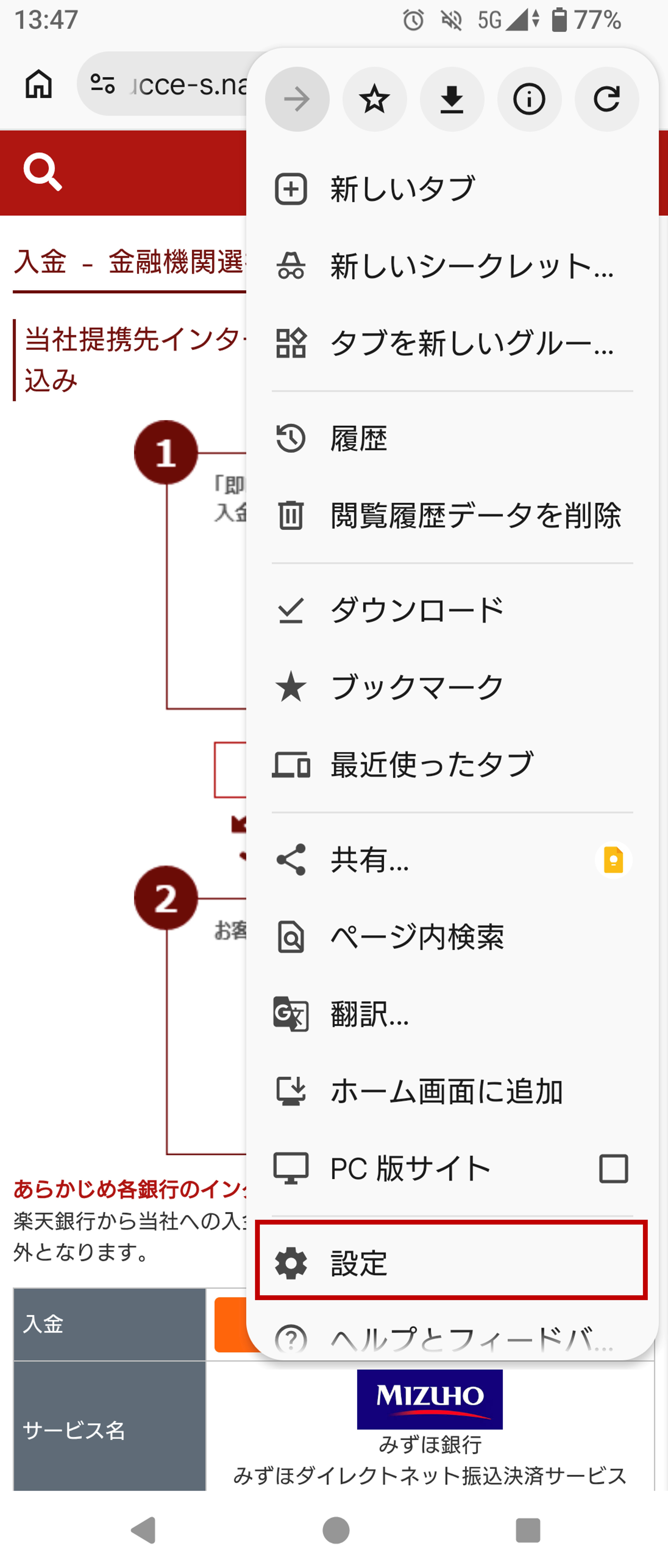Chrome(アンドロイド)でポップアップブロックを解除する方法