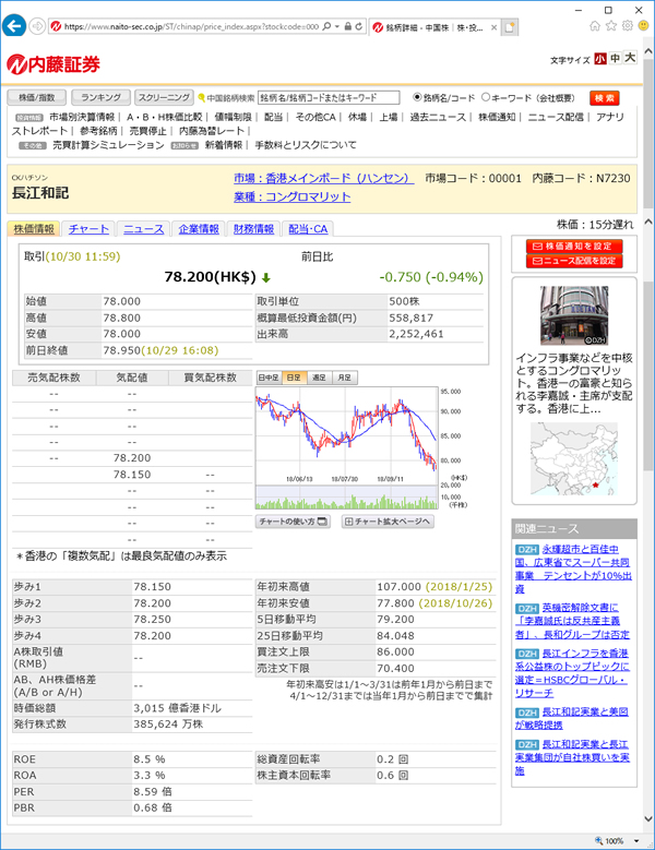 香港市場・上海株・深セン株は15分遅れのデータとなります。
