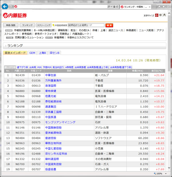 「Succe-s trade」で口座をお持ちのお客様は、中国株情報のすべてがご覧いただけます。口座をお持ちでないお客様は、一部情報のみご利用いただけます。