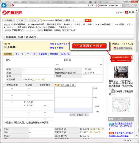 株価通知メールは内藤証券で口座をお持ちのお客様のみのサービスです。