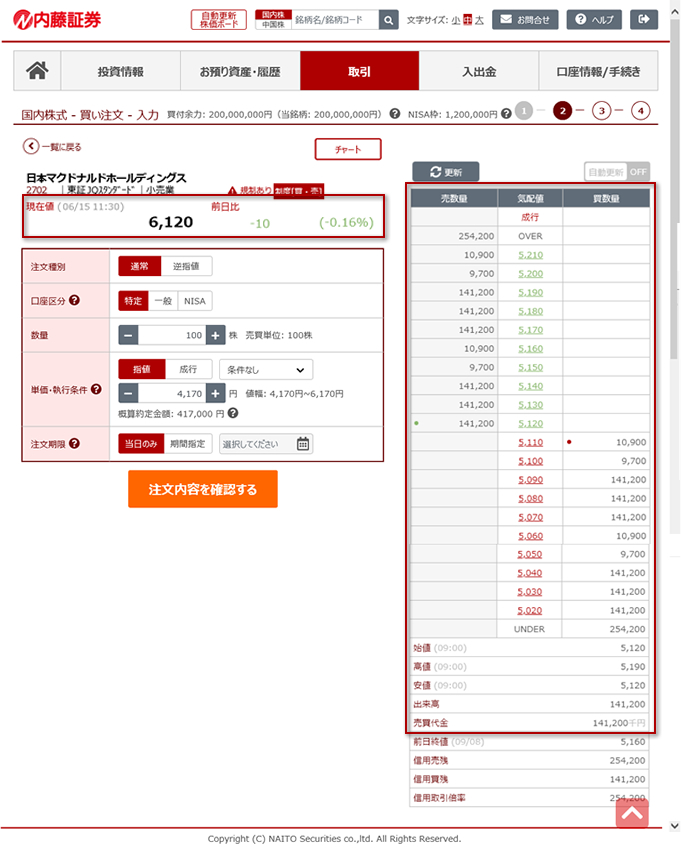 現在値・前日比・複数気配高(売数量・気配値・買数量)・始値・高値・安値・出来高・売買代金