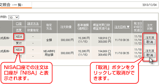 - [注文照会(取消)]で、注文内容をご確認ください。