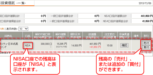 | 投信つみたて | 毎月一定額を積み立て、長期的な資産形成に適しています。 勘定区分「つみたて投資枠」・「成長投資枠」・「課税口座」から選択が可能です。 |