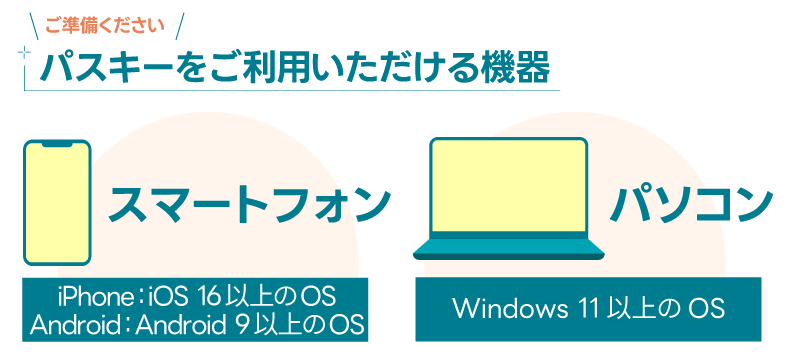 お客様の大切なご資産を守るため、サービス開始時にすぐご利用いただけるよう、パスキー対応端末のご準備をお願い申し上げます。