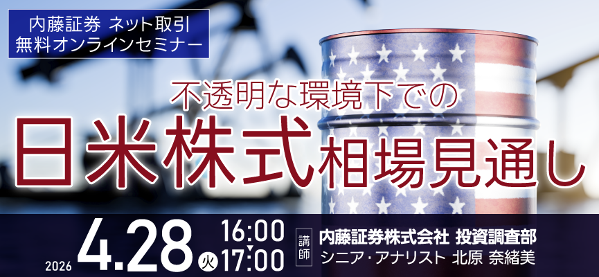 ・本セミナーは内藤証券ネット取引のお客様向けです。お申込み時にご入力いただく口座番号に誤りがある場合、ご視聴をお断りする事がございますのでご了承ください。