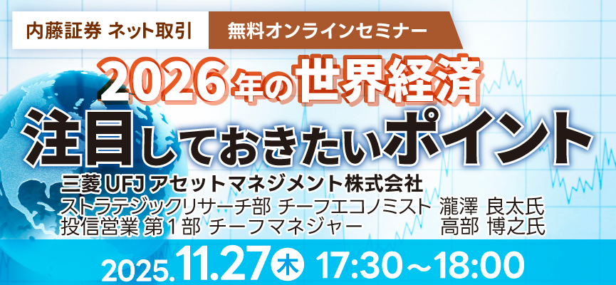 ・本セミナーは内藤証券ネット取引のお客様向けです。お申込み時にご入力いただく口座番号に誤りがある場合、ご視聴をお断りする事がございますのでご了承ください。